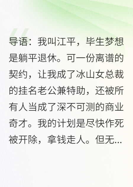 嘴里还是那句话:“姐,我活干的真好。”于佳再傻也明白过来了,他能不能变个说法。